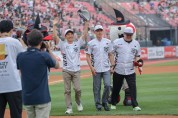 박민식 국가보훈처장이 4일 오후 수원KT위즈파크에서 열린 KT위즈와 함께하는 호국보훈의 달계기 나라사랑 시구행사에 참석하여 행사전 대기실에서 2015년 목함지뢰 폭발사고로 부상을 당한 국가유공자 하재헌 중사, 6.25참전유공자의 후손인 강병준 육사생도및 주요내빈과 함께 환담을 나누고 기념사진을 찍고 있다,박민식 국가보훈처장이 4일 오후 수원KT위즈파크에서 열린 KT위즈와 함께하는 호국보훈의 달계기 나라사랑 시구행사에 2015년 목함지뢰 폭발사고로 부상을 당한 국가유공자 하재헌 중사, 6.25참전유공자의 후손인 강병준 육사생도와 함께...